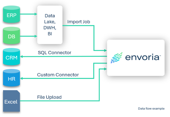 Die leistungsstarken Schnittstellen von Envoria erleichtern die Datenintegration und bieten Ihnen zahlreiche Optionen für maßgeschneiderte, automatisierte Datenflüsse. So können Sie die Anbindung an Ihre Systeme optimal gestalten: