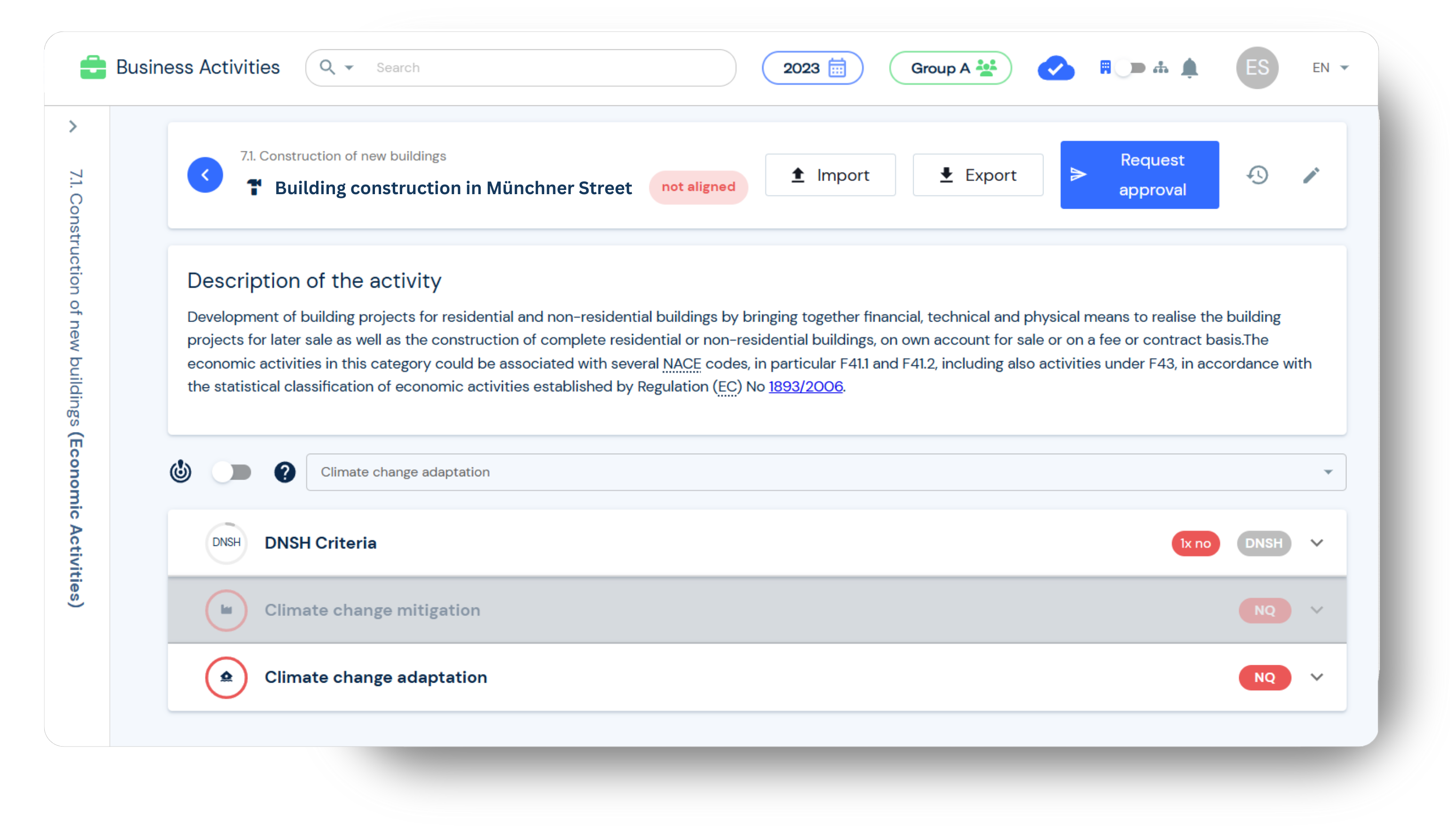 Die EU Taxonomie verlangt, dass Sie Ihre Wirtschaftstätigkeiten im Hinblick auf Umweltziele bewerten und darüber berichten. Mit unserem Modul zur Klimarisikoanalyse erhalten Sie wertvolle Einblicke in physische Klimarisiken und können Ihre Aktivitäten als „nachhaltig“ klassifizieren, sobald sie die festgelegten Umweltkriterien erfüllen.