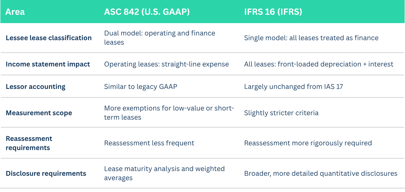 For U.S.-based companies with international subsidiaries or operations, understanding the differences between ASC 842 and IFRS 16 is critical. While both standards aim to improve lease transparency by bringing leases onto the balance sheet, they differ significantly in application and impact.